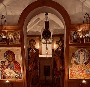 Fr. John has been a dear friend for many years, and when he eventually retired, he decided he wanted to learn to say the Traditional Latin Mass. He was retiring to a property he’d been left by an aunt, and which he was converting into what can only be described as a hermitage. And what a hermitage! It would take too long to explain his (and my) close connection to the Ukrainian Greek Catholic tradition, but as a result of that, he’s inherited an incredible series of icons and had an iconostasis made for his chapel. With all this beauty on display, he actually wanted his Missale Romanum to be decidedly simple and ‘Roman’ – no gold tooling, not even the title on the spine!