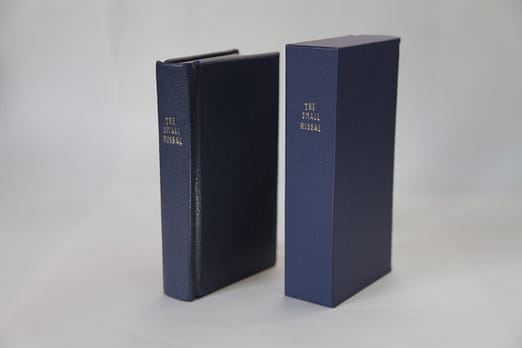 There are still plenty of pocket Missals and other smaller Catholic prayer books out there, and being less solid than full-sized editions, they require a little more care. I designed this 2 part slipcase to fully enclose more delicate books, but still allow ease of access and be a beautiful object in its own right. As usual, since I’m making each one from scratch, we can talk about the colour of the cloth, the decorative papers, and any personalisations you’d like before I start work.